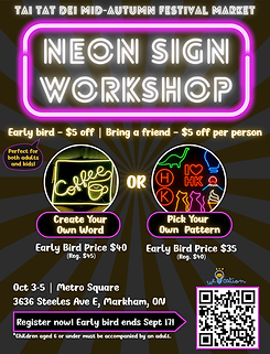 Wellcation will host an Alcohol Ink Moon Workshop and a Neon Sign Workshop at the Tai Tat Dei Mid-Autumn Festival Market, with early bird discounts available!
